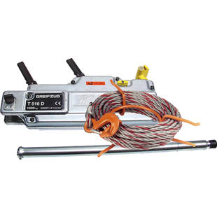 | Compris dans la livraison | palan, tube à levier, câble avec pointe et crochet caoutchouté (sur roue à bras, Ø 11,5 mm, longueur 20 m) |